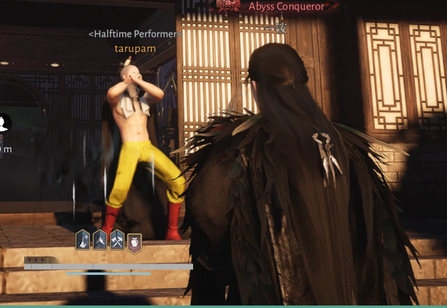 As you can see in the captured evidence, he’s currently in his natural habitat: shirtless, wearing questionable yellow trousers, and vibrating with enough chaotic energy to humble a god. His official job description is simple: Punish the guild into oblivion. He beats us so thoroughly that we literally have no choice but to get better at the game out of pure survival instinct. It’s "tough love," if the love feels like a freight train hitting your ribcage.